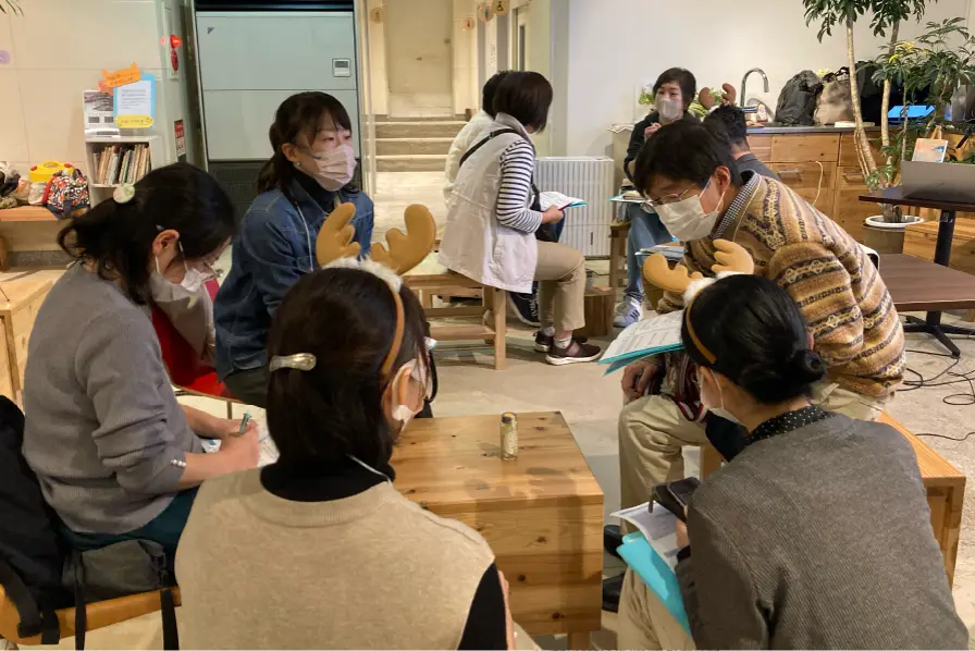 奈良市で「ふくふくファーム」と名付けた農園で野菜と米を育てながら、暮らしの延長にあるコミュニティナーシングを展開しています。 自分の農園の景色と土に触れることが好きで、日々作物を作るだけではもったいなあと思っていました。 畑にきた人のつぶやきをきっかけに「はたけの読書会」を1年前にたちあげ、定期的に開くうちにリピーターができました。 田植えや稲刈りに興味を持たれ自然と手伝ってくださるようになり、今では貴重な農作業の担い手です。 また温泉複合施設の「奈良健康ランド」で健康相談を立ち上げから参画し、現在3人体制で週2回開いています。 さて、このゼミでは「農」や「食」に興味のある方、とにかく奈良で何かしたい方など受講生9名が集まり、 コミュニティナースの基礎を実践する場として開講しました。 ゼミ1日目の前半はコミュニティナース活動に必要な「自分を知る」ワークショップ、後半は福島の実践例を紹介しました。 会場は近鉄奈良駅からほど近い奈良市の創業支援施設「BONCHI」をお借りしてアットホームな雰囲気で2時間半のゼミを開きました。