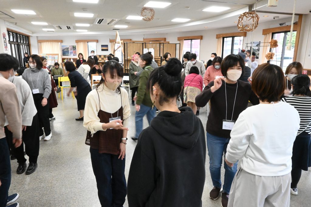 やっていることは、シンプルなじゃんけん。しかし、そのじゃんけんも相手との間合いを感じたり、見つけあったり、声を出したりと、アクティビティの随所に仕掛けられた、仲良くなっていくための魔法のような仕掛けに、初めはどこか、よそよそしさもあった皆さんの表情は解れていきます。手話や筆談を用いて実施するアクティビティでは、mojiccaのパンフレットに書かれた‟しずかで、うるさい”情景も見ることが出来ました。1時間のアクティビティ終了後は、受講生の間に一体感が感じられ、宮川先生のおかげで、発表前のよい雰囲気が整いました。
