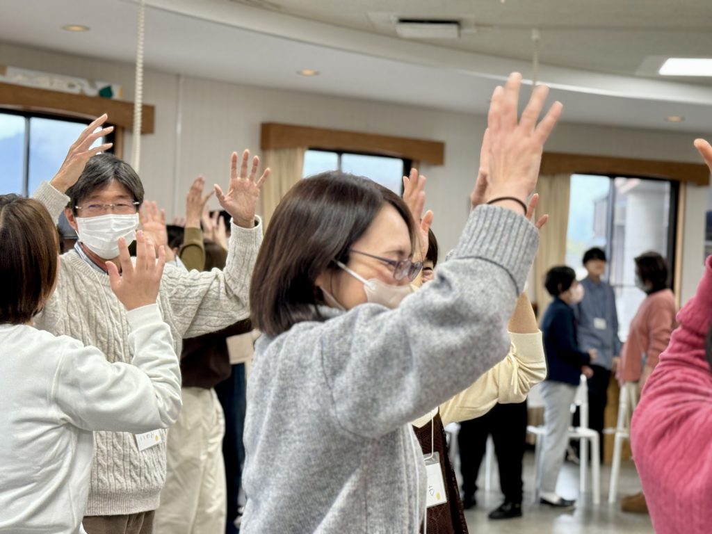 同じゼミの親しくなった顔、同じテーマを学んでいるけども初めましての顔。と親交の度合いも異なる中で発表する上でも、少しでも「心地よい場」にするために、発表前に身体と気持ちを動かすアクティビティを実施しました。
